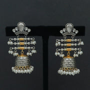 A Silver Dual Tone Antique Jhoomka is a beautiful and timeless piece of jewelry that combines the elegance of sterling silver with a dual-tone finish, offering a sophisticated and antique-inspired design. The Jhoomka earring, known for its bell-shaped or rounded silhouette, is a classic traditional design often worn for cultural and festive occasions.