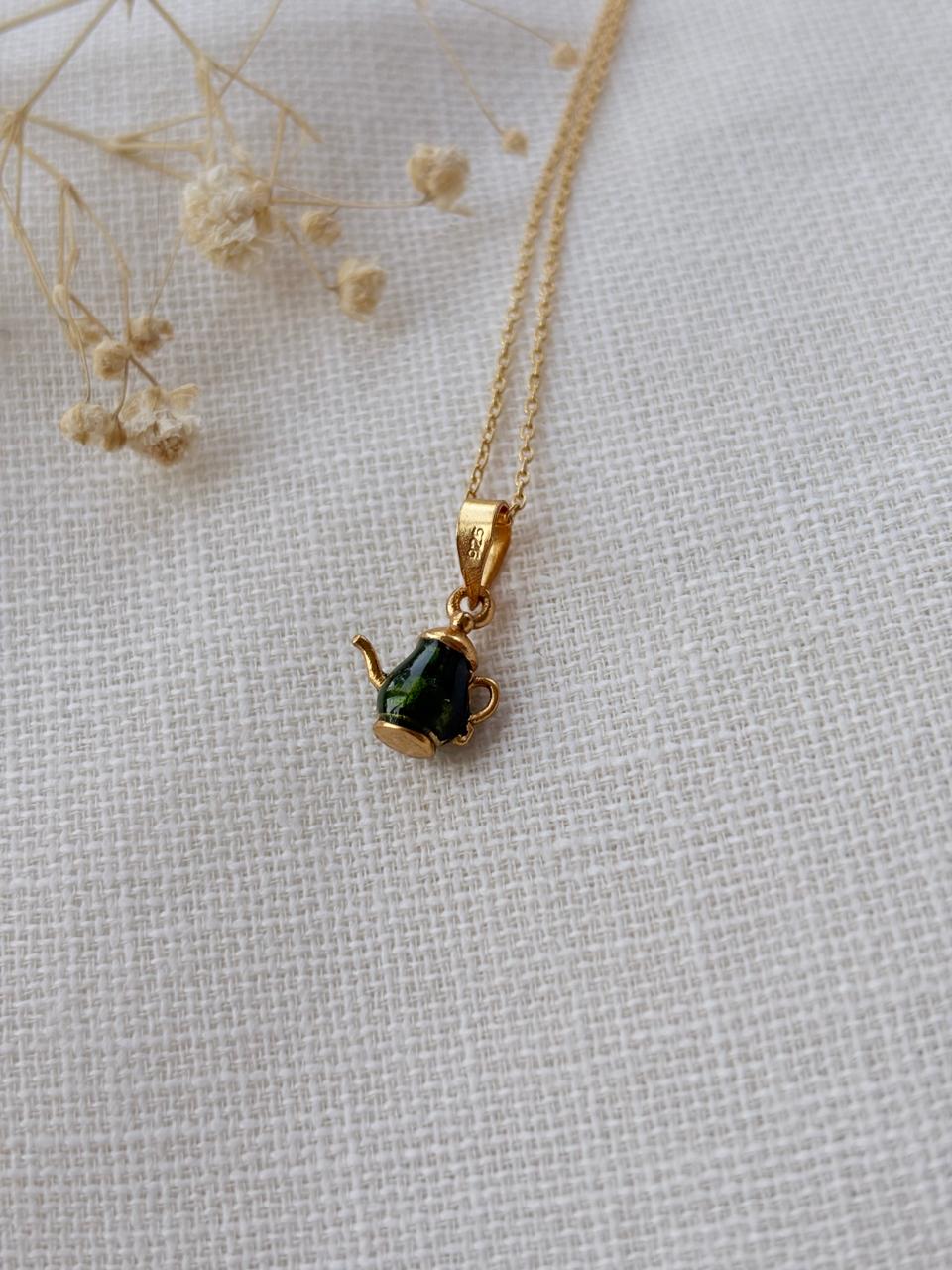 Gold Plated Green Teapot Peantant Without Chain
