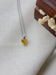 Silver Minimalist Yellow Heart Shaped Pendant (Without Chain)