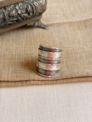 Celebrate timeless ethnic charm with this Silver Spinner Ring (Adjustable) beautifully crafted in 92.5 sterling silver. Featuring an intricate floral motif with an oxidised finish, this ring reflects traditional artistry with a bold yet elegant appeal. Perfect for those who love statement jewelry, it pairs effortlessly with both ethnic outfits and fusion wear.