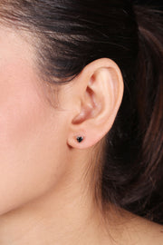 Silver Black Hearted Stone Studs