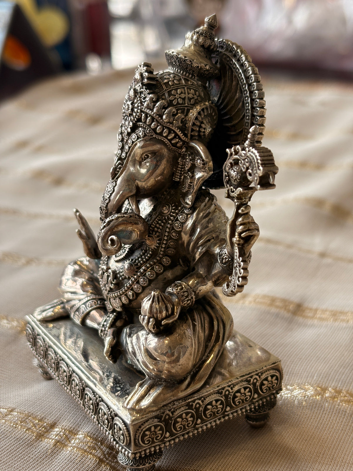 A silver Ganesh murti is a revered and auspicious item in Hinduism. Ganesh, also known as the god of wisdom and good luck, is worshipped by millions of people worldwide. A silver Ganesh murti, or statue, is considered to be a symbol of good fortune and blessings.